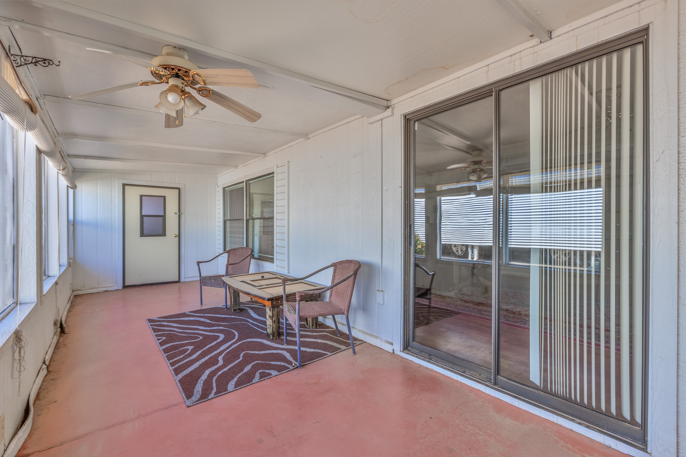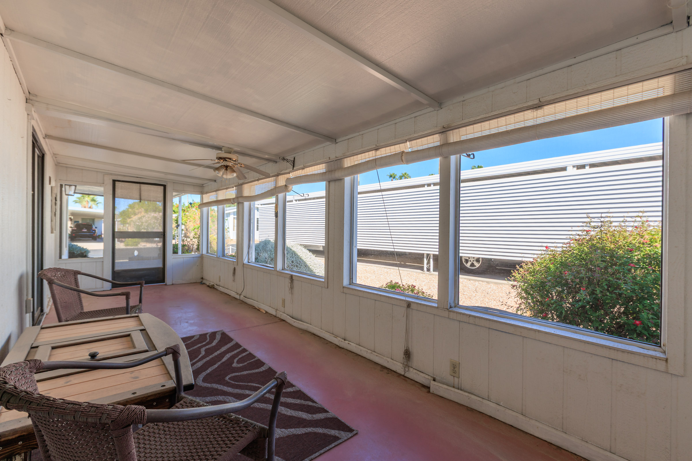 Enjoy a $2,500 credit from the seller—use it for new flooring, décor, or anything you’d like to make the home your own! Spacious 2 bedroom, 2 bath home offering 1,536 sq ft of comfortable living space. The primary suite featuring a double-seated walk-in shower, dual sinks, and ample closet space. The guest bathroom includes a convenient tub/shower combo for added comfort. The kitchen boasts an abundance of cabinets, a breakfast bar, and a pantry—perfect for everyday cooking and entertaining. A dedicated laundry room with built-in desk, washer and dryer, and extra cabinetry adds even more functionality. The screened room provides additional outdoor enjoyment, plus two storage sheds. Flooring includes a mix of laminate, vinyl, and carpet for a blend of comfort and practicality. Step outside to a clean, epoxy-coated patio—great for relaxing or hosting. Updates include A/C and furnace (2016), a new water heater (2023), and a new garbage disposal. Call to schedule your personal tour today! (480) 325-1161