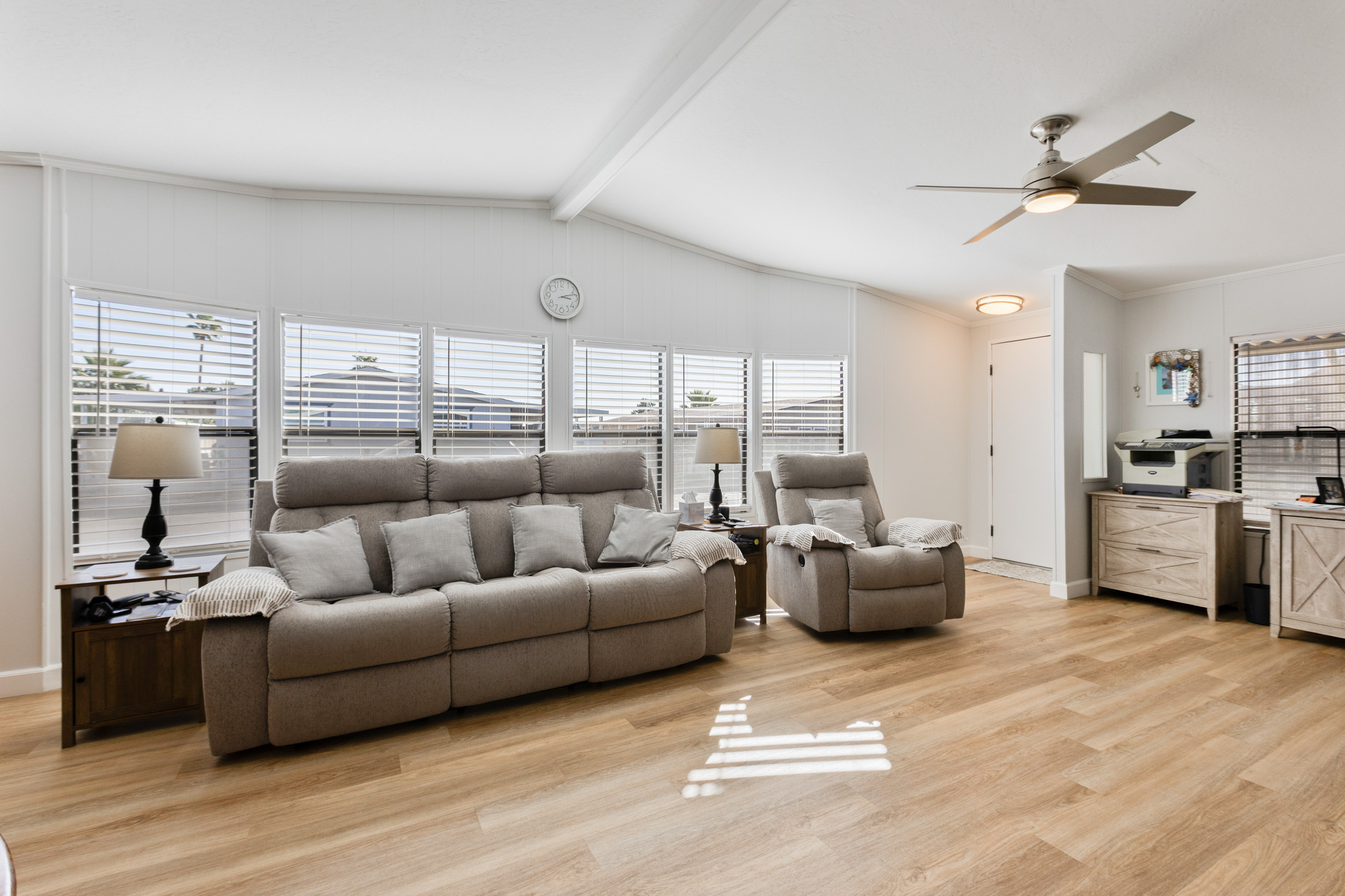 - Upgraded drapery package with mini blinds