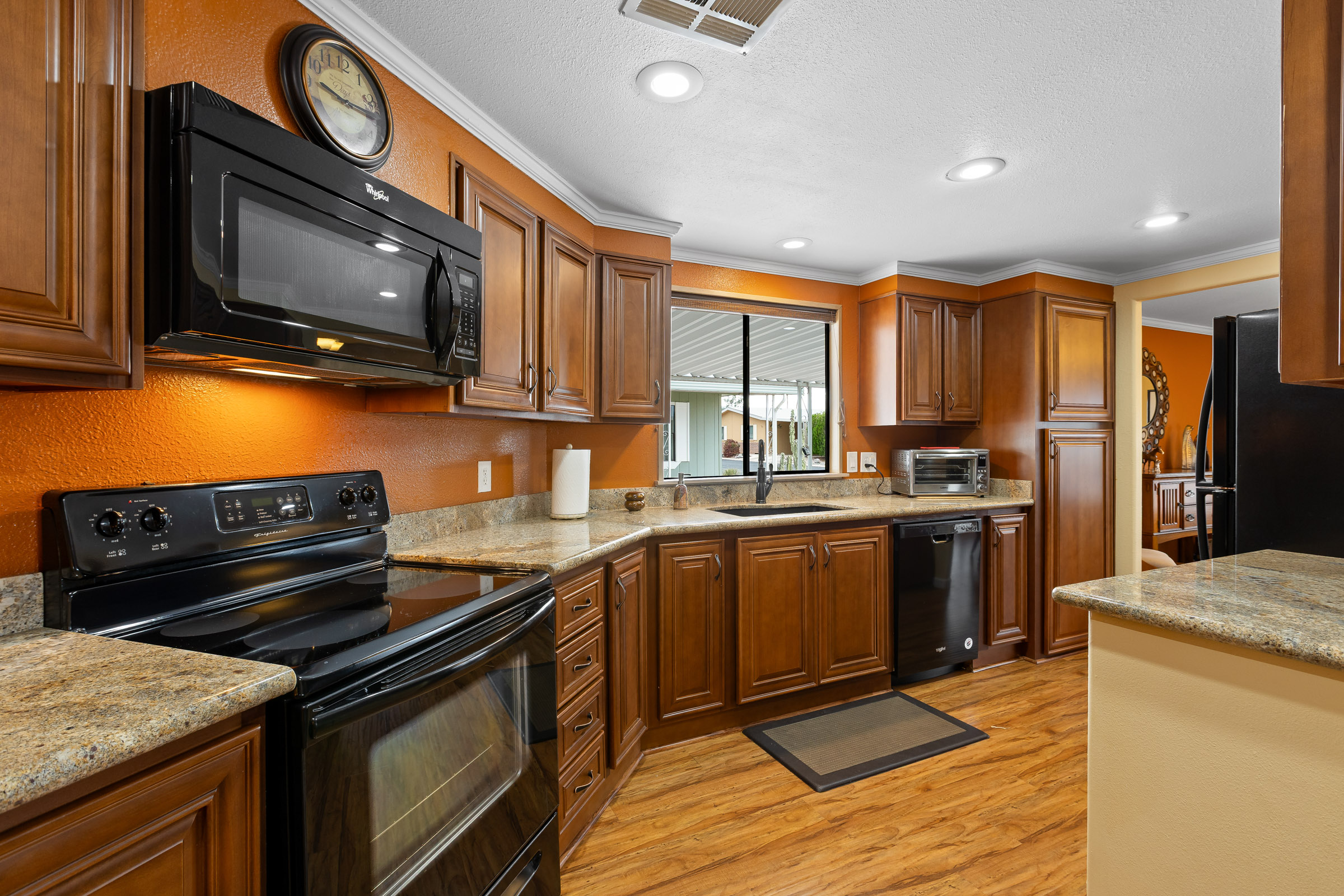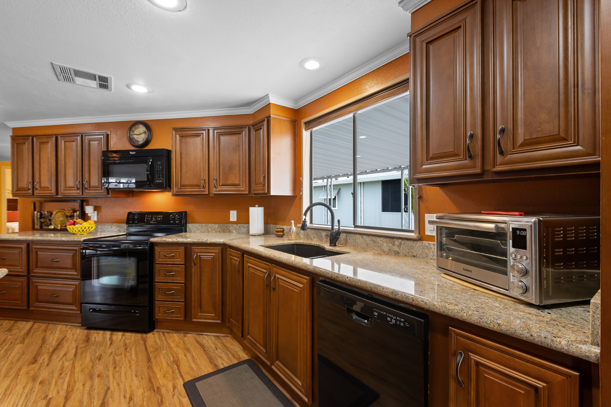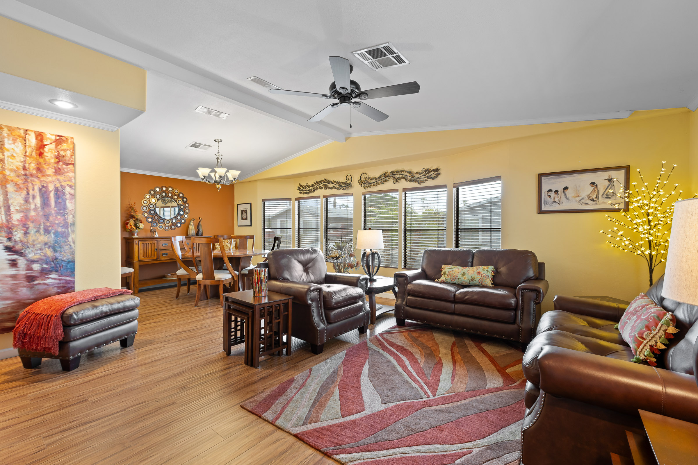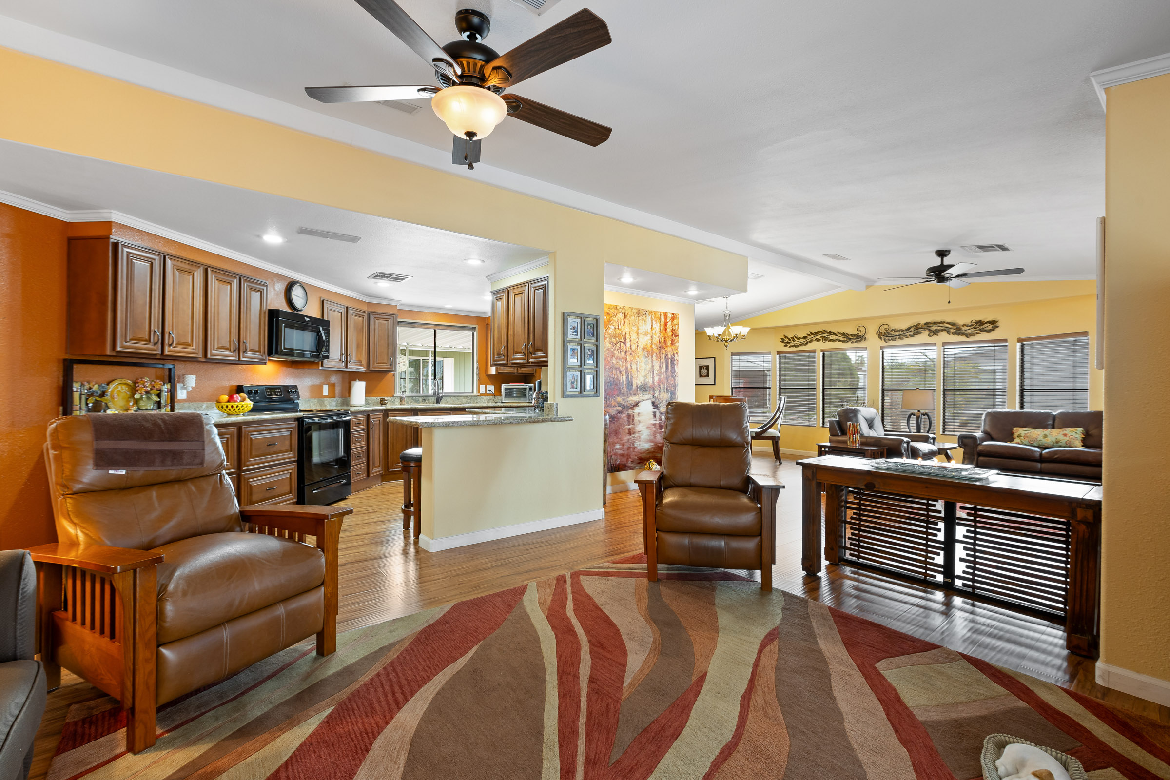 This beautifully updated 2-bedroom, 2-bath, 1,652 sq. ft. home comes fully furnished and equipped—ideal for snowbirds looking for a turnkey retreat. Recent upgrades include a roof (approx. 5 years), new A/C and furnace (2024), new plumbing, soft-close cabinetry, granite countertops, new fridge and dishwasher, and laminate flooring throughout. The spacious kitchen offers a breakfast bar, pantry with pull-out shelves, and ample storage, while the laundry room doubles as a workspace with a desk, utility sink, washer, and dryer. The master suite features dual sinks and a resort-style walk-in shower, and the guest bath includes a tub/shower combo with a new vanity. Outside, enjoy two storage sheds, a mini fridge and mini freezer that convey, plus citrus trees (orange and lemon) with irrigation. The driveway and patio are finished with a stylish flagstone-look epoxy coating, making this home move-in ready and perfect for enjoying Arizona living. Call to schedule your personal tour today! (480) 325-1161
