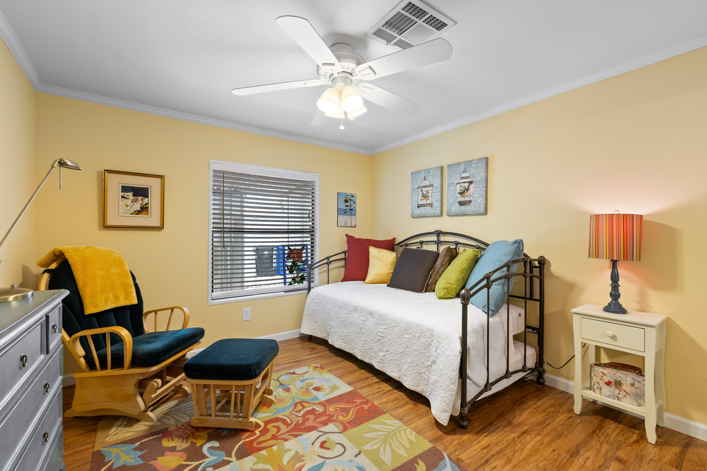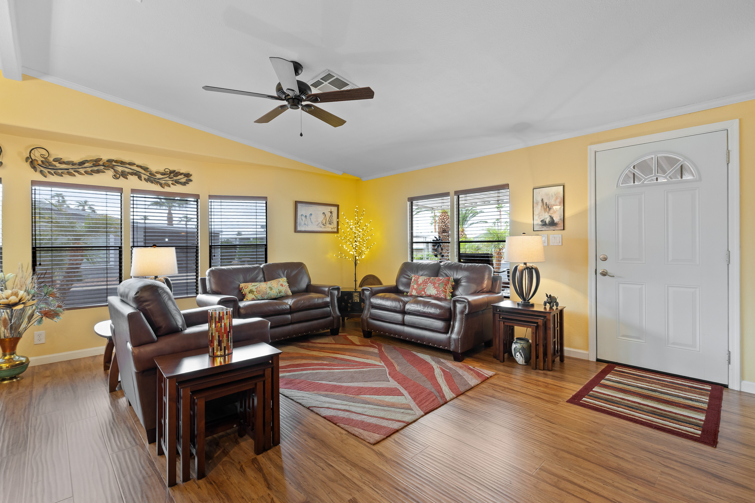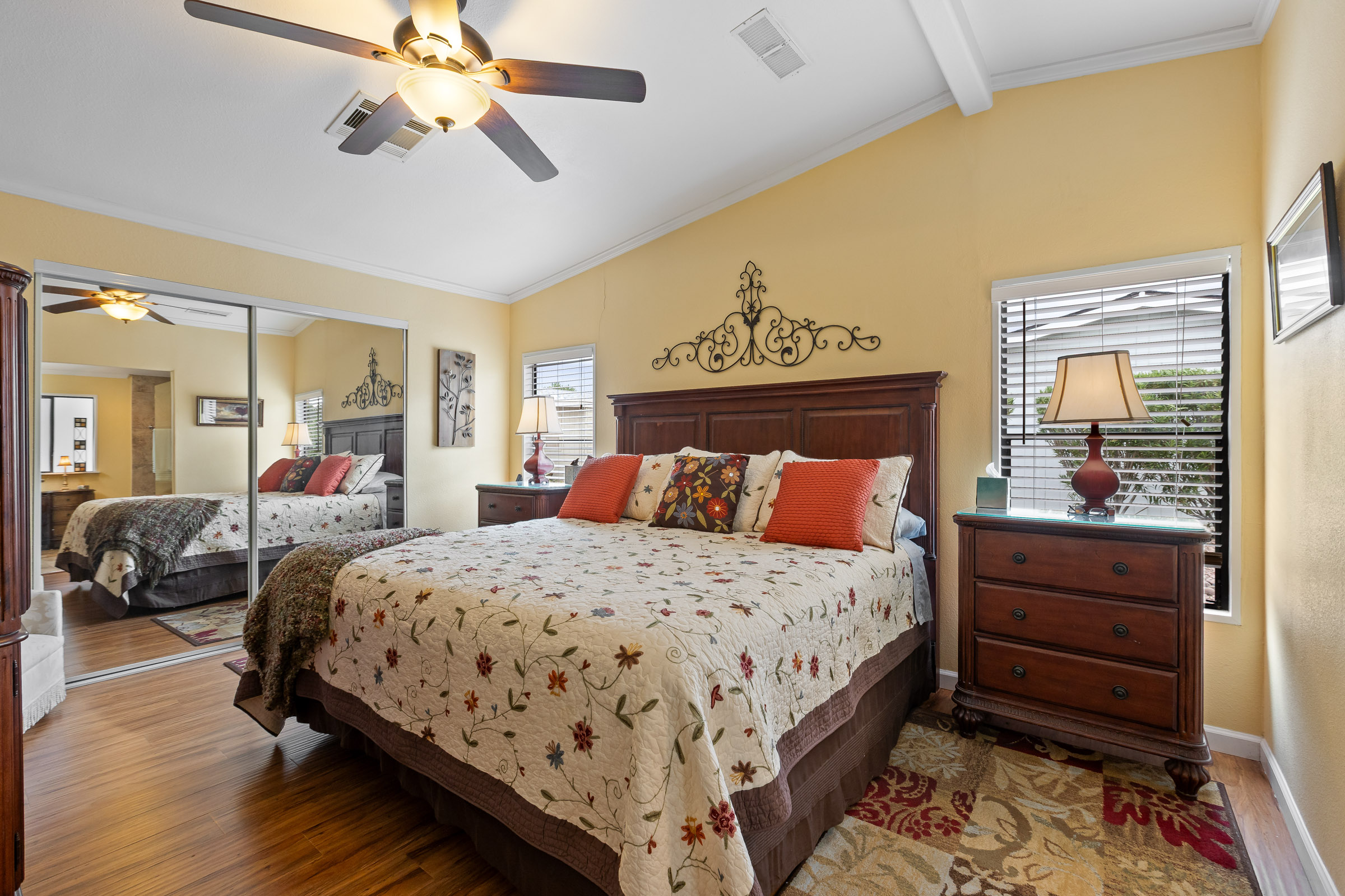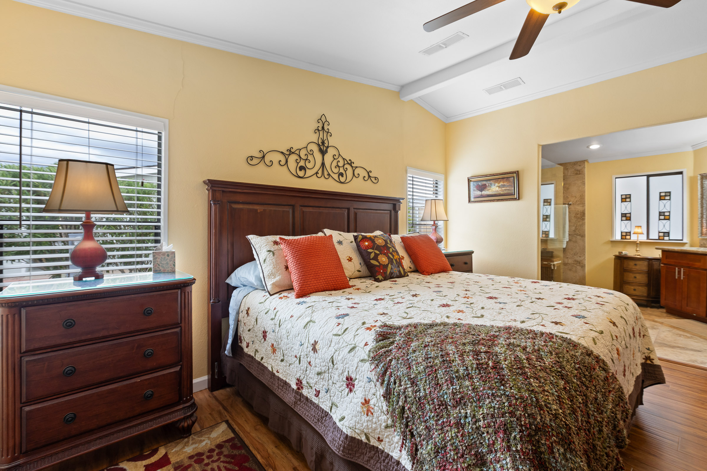 This beautifully updated 2-bedroom, 2-bath, 1,652 sq. ft. home comes fully furnished and equipped—ideal for snowbirds looking for a turnkey retreat. Recent upgrades include a roof (approx. 5 years), new A/C and furnace (2024), new plumbing, soft-close cabinetry, granite countertops, new fridge and dishwasher, and laminate flooring throughout. The spacious kitchen offers a breakfast bar, pantry with pull-out shelves, and ample storage, while the laundry room doubles as a workspace with a desk, utility sink, washer, and dryer. The master suite features dual sinks and a resort-style walk-in shower, and the guest bath includes a tub/shower combo with a new vanity. Outside, enjoy two storage sheds, a mini fridge and mini freezer that convey, plus citrus trees (orange and lemon) with irrigation. The driveway and patio are finished with a stylish flagstone-look epoxy coating, making this home move-in ready and perfect for enjoying Arizona living. Call to schedule your personal tour today! (480) 325-1161