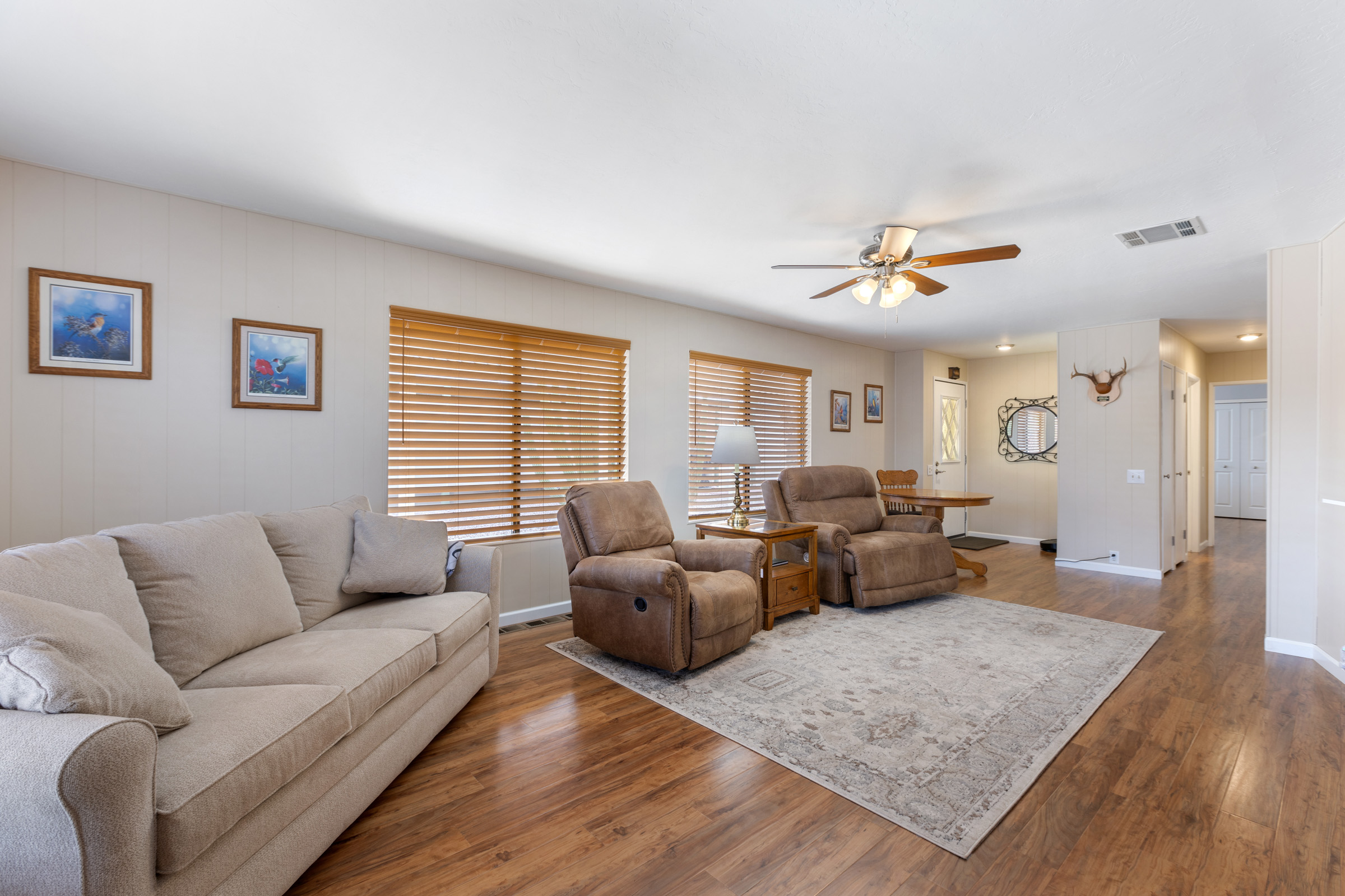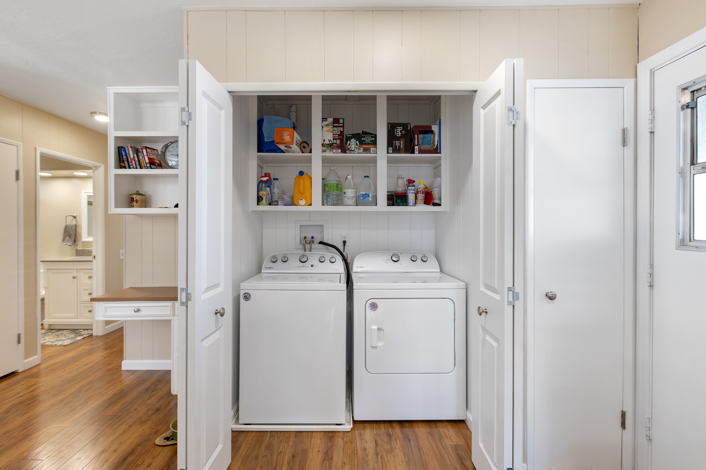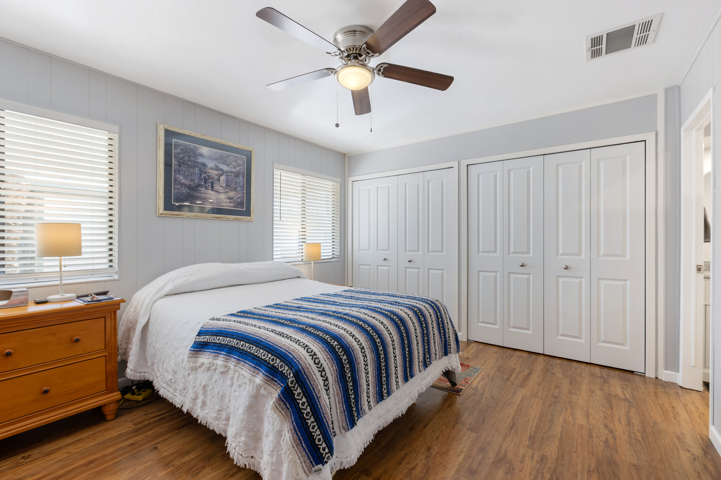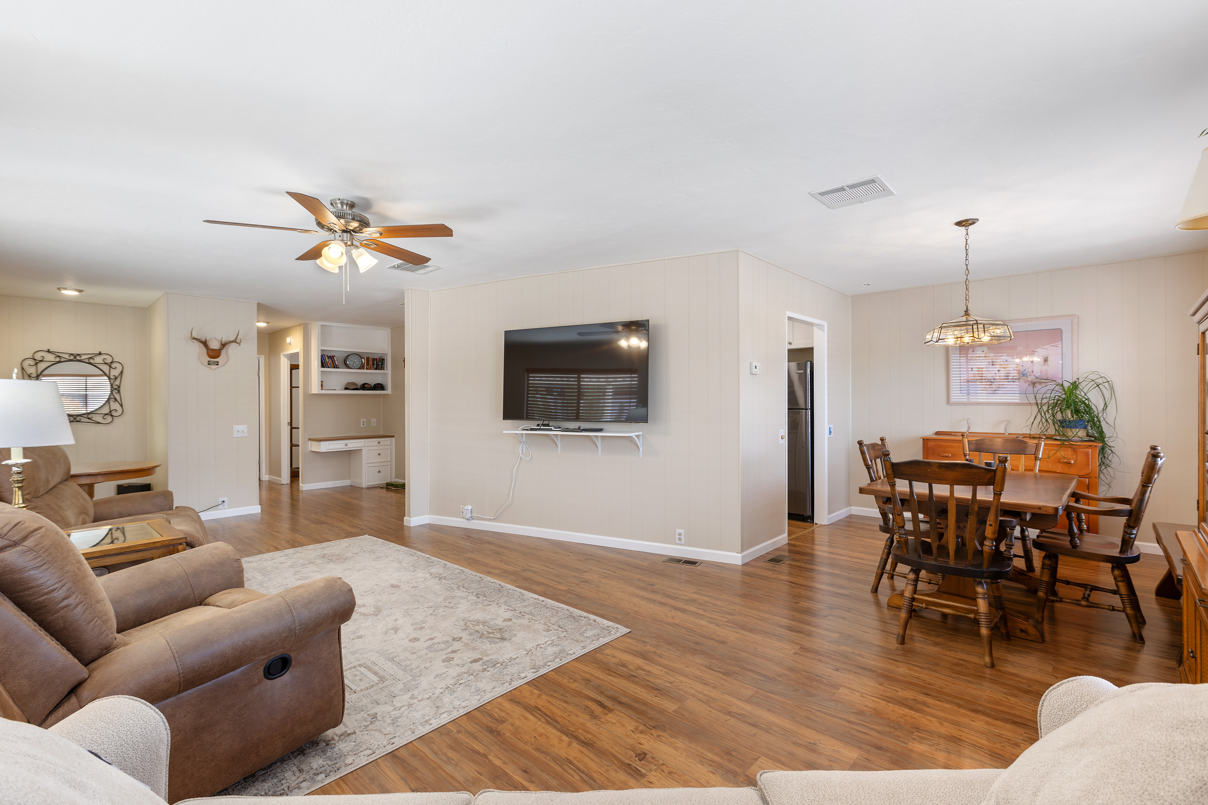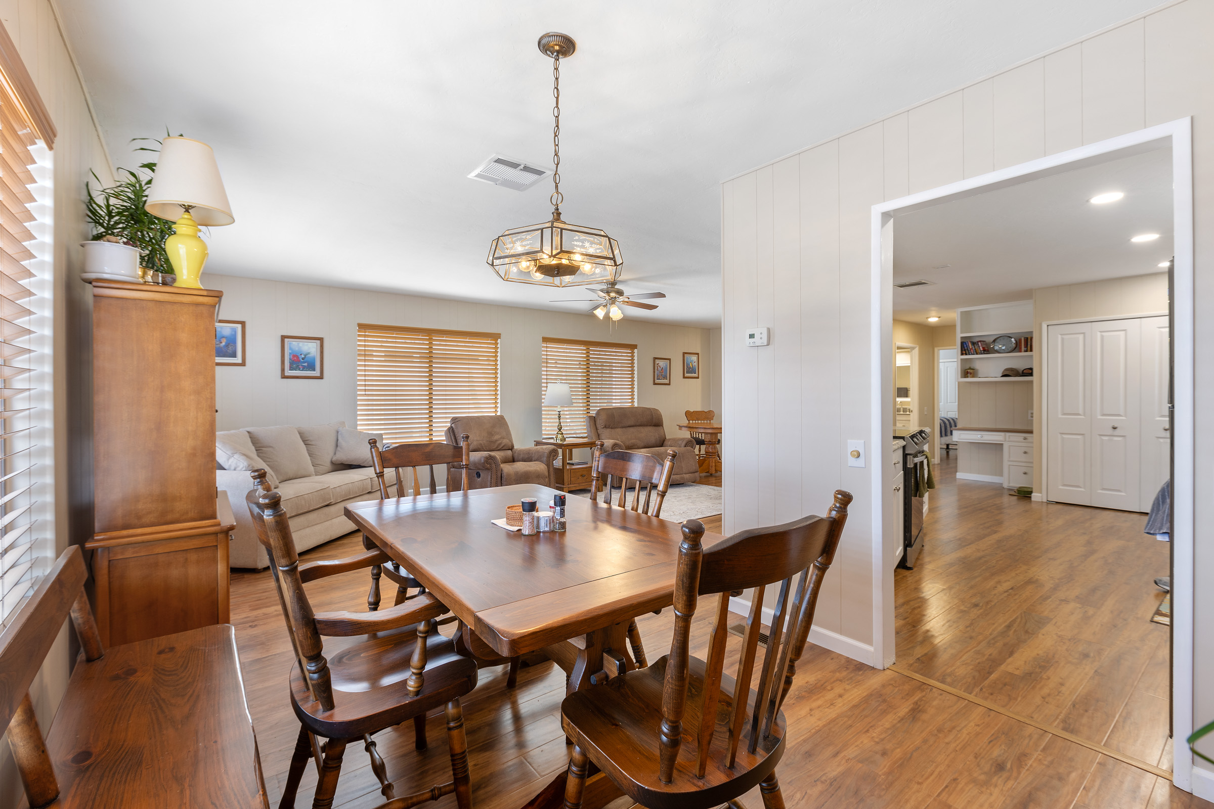 Photos shown are from the former owner — new photos coming soon! Remodeled 2-bedroom, 2-bath with 1,248 sq. ft. and modern updates throughout. Features include tape and textured ceilings, laminate flooring, and a stylish kitchen with new white soft-close cabinets, stainless steel appliances, a deep sink, and pantry. Laundry room includes washer, dryer, and built-in desk. The primary bath offers a soaking tub, step-in shower, and dual sinks; the guest bath has a double-seated shower. Recent upgrades include a new roof and carport awning (2023) and epoxy-coated patio and carport (2025). Outside, enjoy lush landscaping with irrigation, palm trees, and orange and lemon trees, plus a handy storage shed. Call to schedule your personal tour today! (480) 325-1161