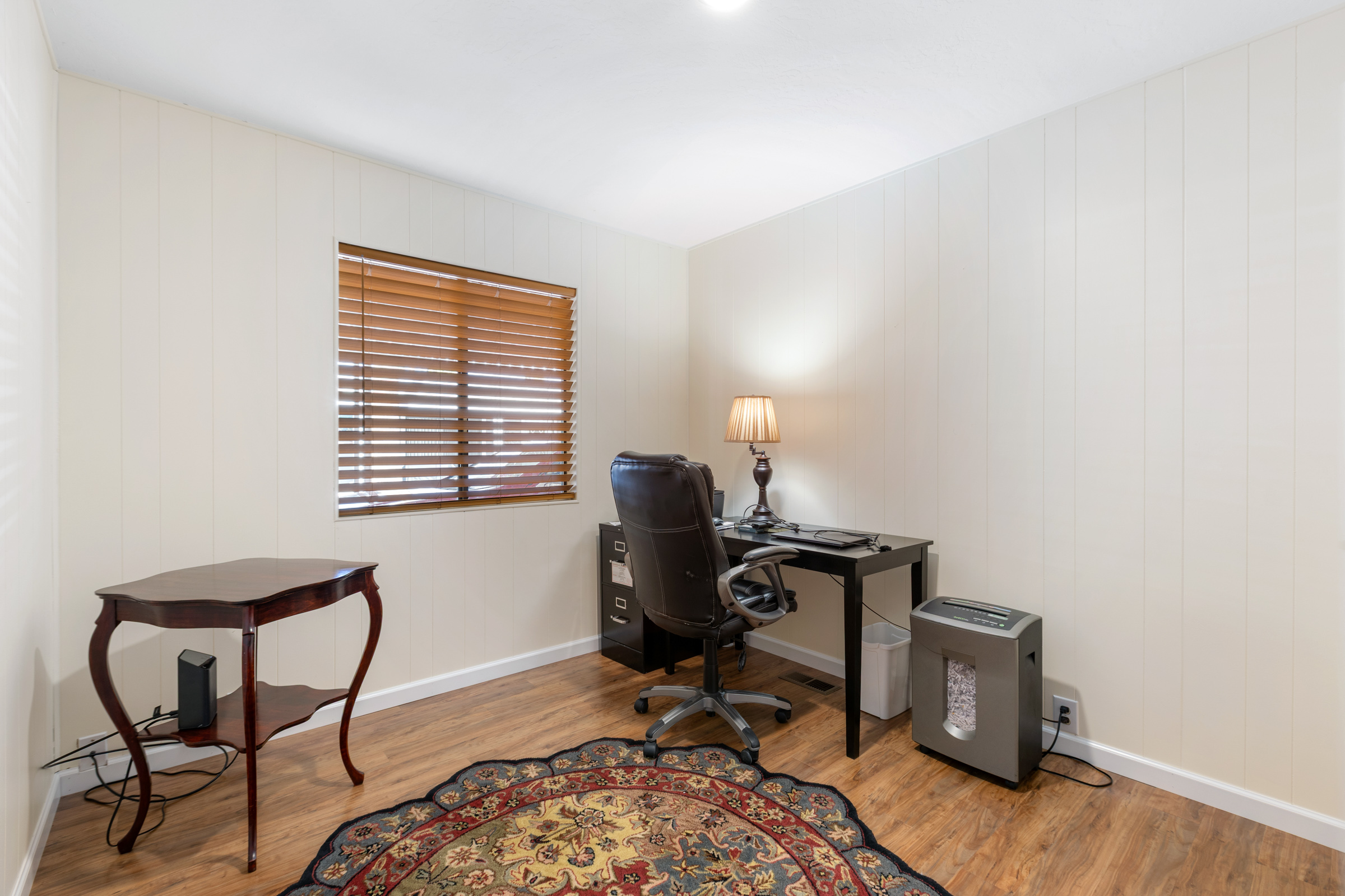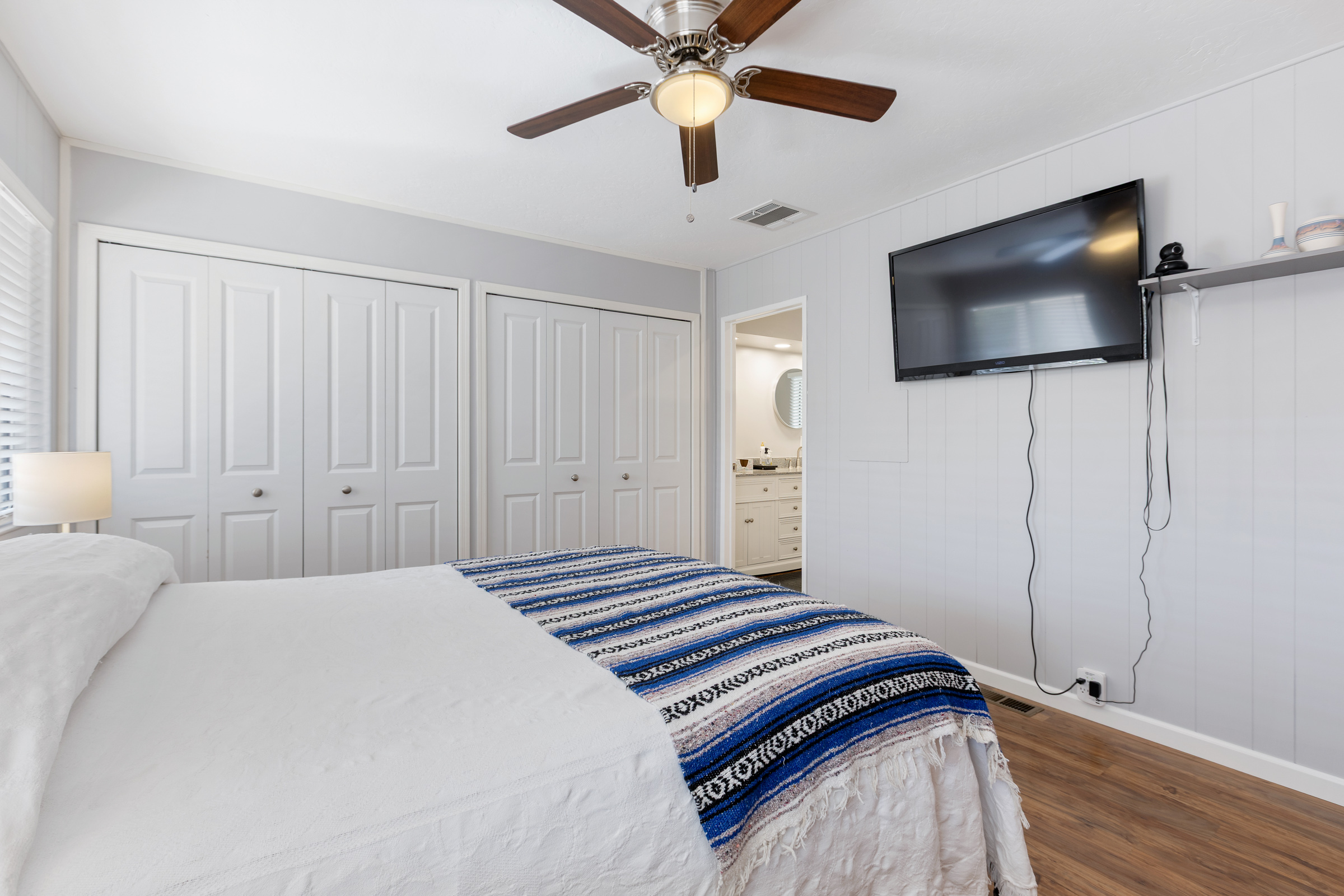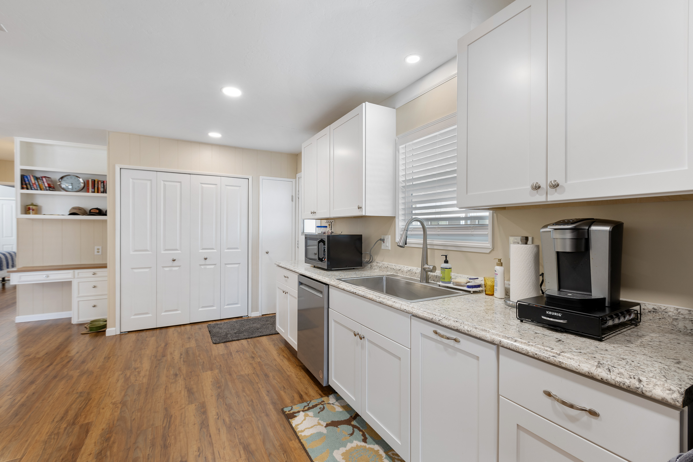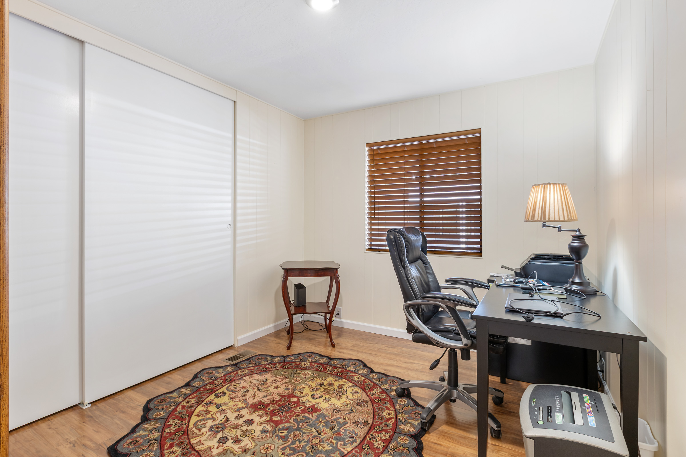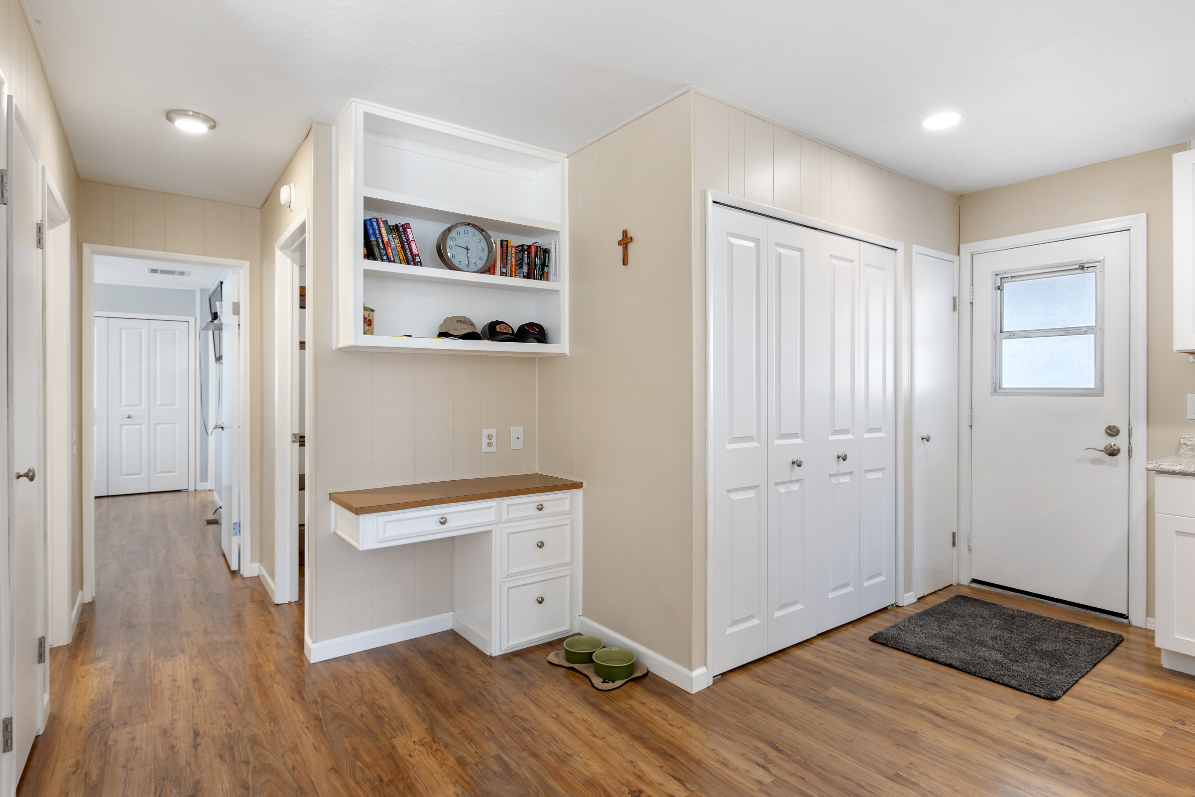 Photos shown are from the former owner — new photos coming soon! Remodeled 2-bedroom, 2-bath with 1,248 sq. ft. and modern updates throughout. Features include tape and textured ceilings, laminate flooring, and a stylish kitchen with new white soft-close cabinets, stainless steel appliances, a deep sink, and pantry. Laundry room includes washer, dryer, and built-in desk. The primary bath offers a soaking tub, step-in shower, and dual sinks; the guest bath has a double-seated shower. Recent upgrades include a new roof and carport awning (2023) and epoxy-coated patio and carport (2025). Outside, enjoy lush landscaping with irrigation, palm trees, and orange and lemon trees, plus a handy storage shed. Call to schedule your personal tour today! (480) 325-1161